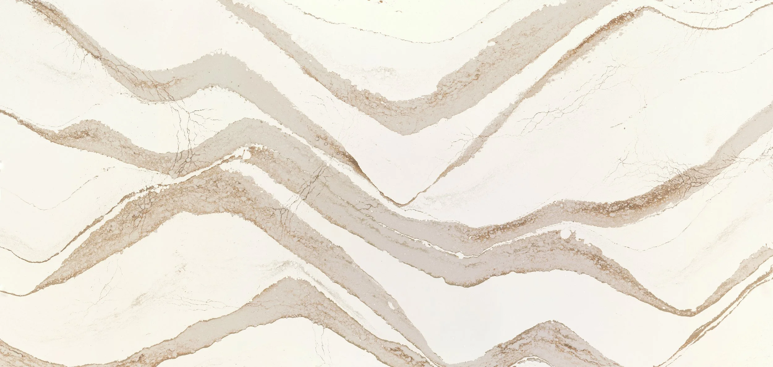 Flowing, multihued streams of copper gold, fog, and translucent greige course through this grand design accompanied by wisps and ribbons of warm earth tones against a crisp, cool background.