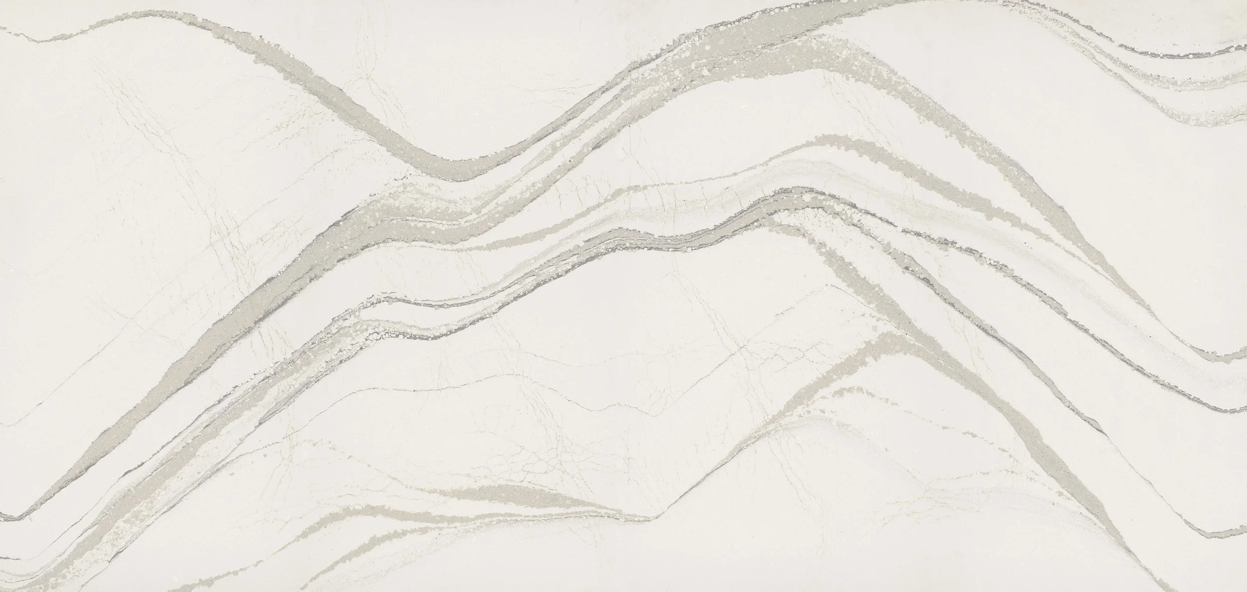 Brittanicca offers a creamy marbled background of neutral white that provides a stage on which gray islands and peninsulas meander among intertwining ashen veins dotted with veiled charcoal speckles.