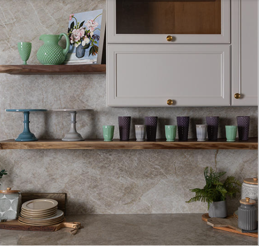 Calacatta Taj redisplays the elegance of theTaj Mahal quartzite but in a quartz form! It is a refined and luxurious aesthetic for the modern or classic kitchen. Featuring a soft, warm beige background with delicate veining, this natural quartz surface enhances any space with its timeless elegance and durability.