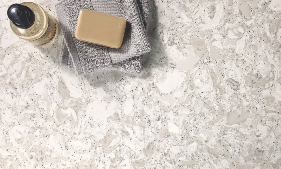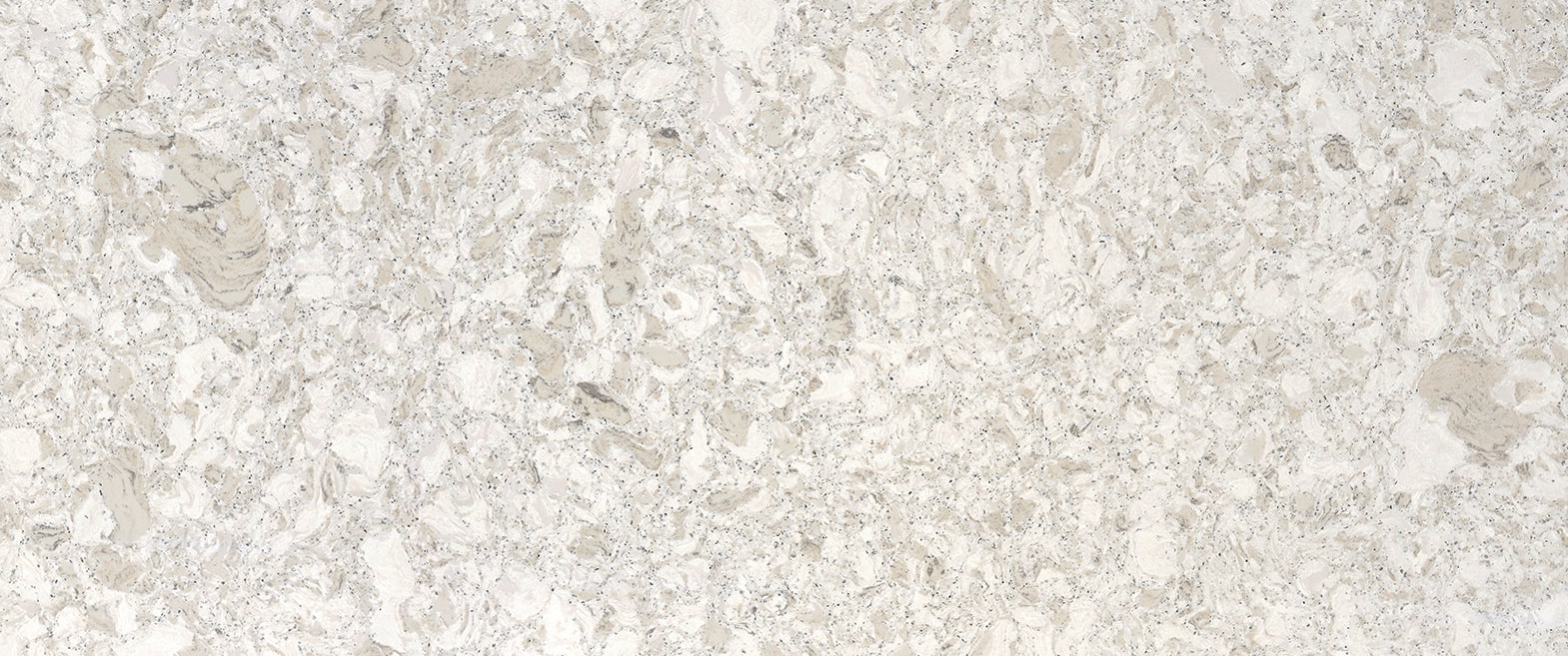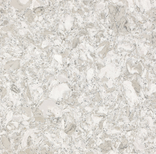 Delightful cool whites and warm grays compose a soothing fusion of hues, while silver flecks move across the surface, adding a touch of subtle glamour.